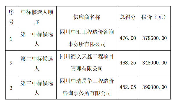 我公司委托四川久安工程管理有限公司代理招標(biāo)的“省道205線(xiàn)綿陽(yáng)繞城段改線(xiàn)建設(shè)工程(游仙區(qū)段)項(xiàng)目結(jié)算復(fù)核審計(jì)服務(wù)”項(xiàng)目(項(xiàng)目編號(hào):四川久安招[2021]7號(hào))于2021年08月19日13時(shí)30分(北京時(shí)間)進(jìn)行公開(kāi)招標(biāo),現(xiàn)對(duì)評(píng)審結(jié)果公示如下: ?