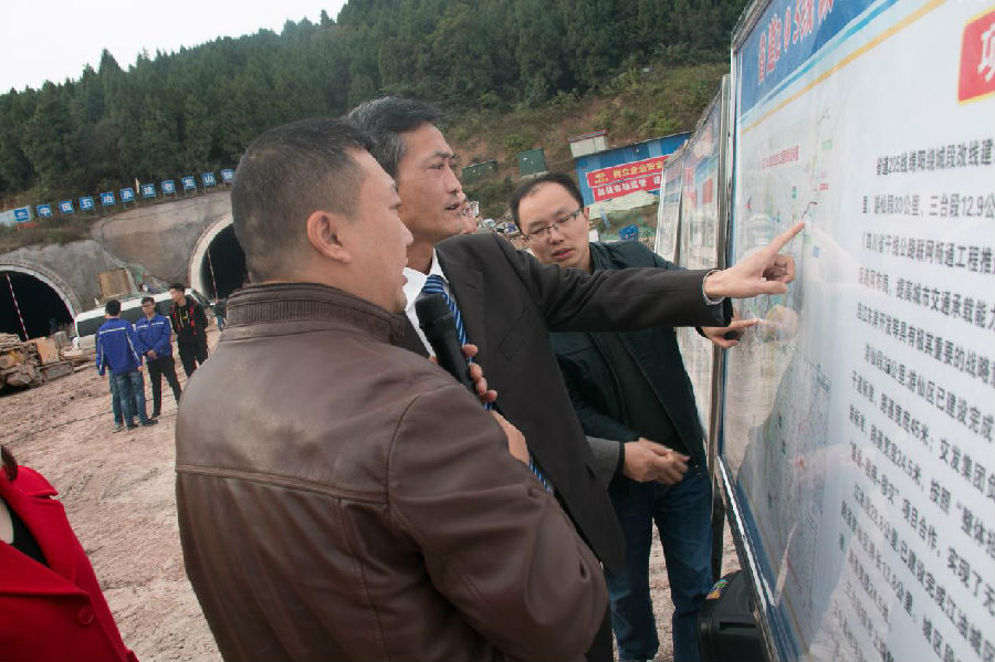 2018年11月7日下午,集團公司領(lǐng)導(dǎo)班子成員調(diào)研金家林新增大型戶外宣傳牌、省道205老龍山隧道工程、繞城高速永明互通立交主線工程等重點項目。
