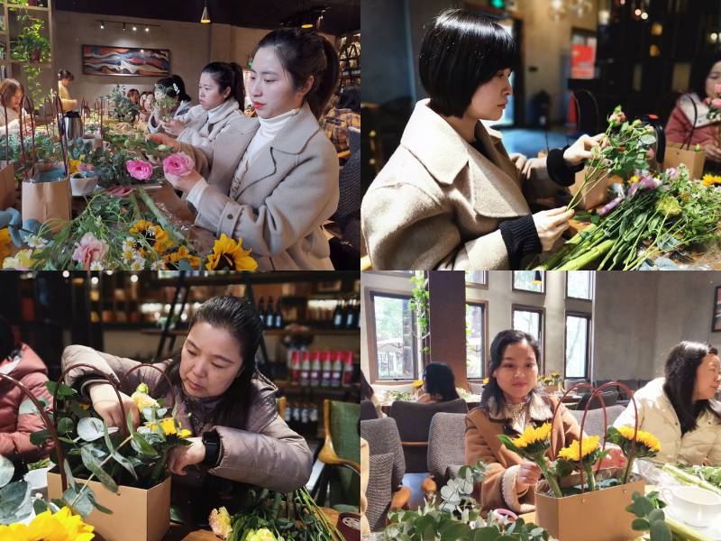 活動(dòng)邀請(qǐng)了專業(yè)花藝師現(xiàn)場授課,花藝?yán)蠋煆孽r花特性、色彩、作用等方面進(jìn)行了生動(dòng)講解,介紹了十余種鮮花的習(xí)性和用法,演示制作了桌擺花藍(lán),讓大家享受了一堂生動(dòng)的插花課程。大家在溫馨愉悅的氛圍中,憑借每個(gè)人對(duì)美的不同理解,把原本普通的花草,經(jīng)過修剪、層次搭配、點(diǎn)綴等步驟,變成了色彩斑斕、獨(dú)具匠心的花藝作品,感受從自己手中綻放的浪漫。