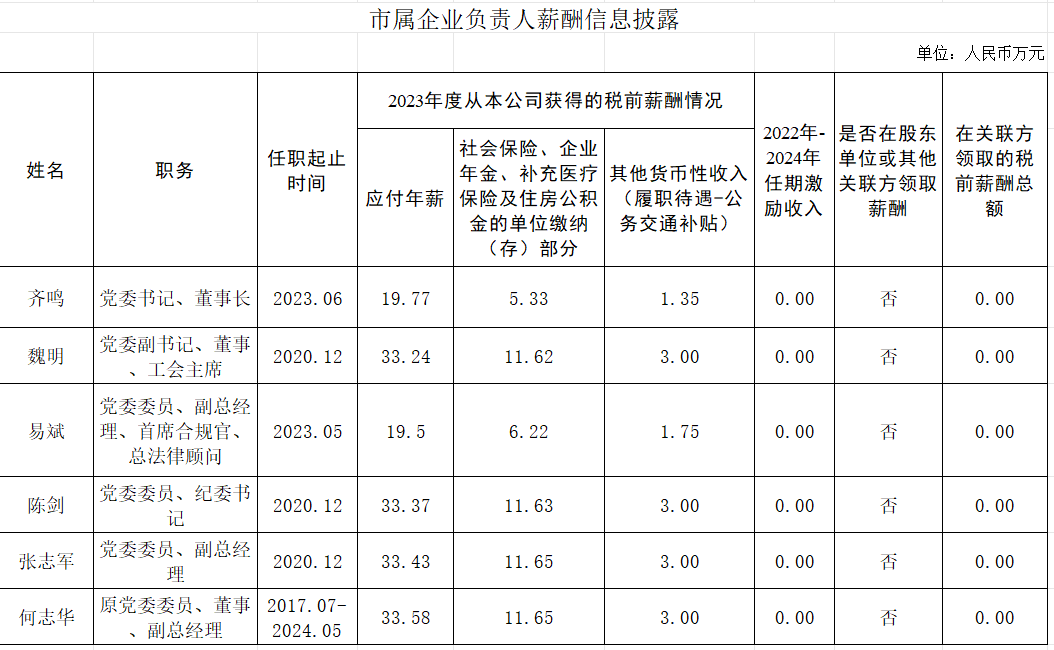 市屬企業(yè)負責人薪酬信息披露