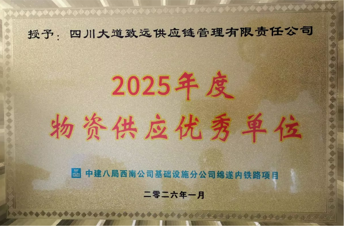 大道供應(yīng)鏈公司榮獲綿遂內(nèi)鐵路項目 “2025年度物資供應(yīng)優(yōu)秀單位”